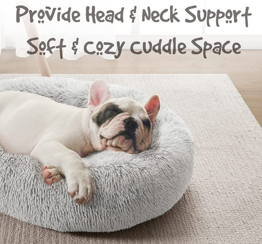Donut Dog Bed Faux Fur Fluffy Calming Sofa for Large Dogs, Soft & Plush anti Anxiety Pet Couch for Dogs, Machine Washable Coco Pet Bed with Non-Slip Bottom, 36"X36"X8" Grey